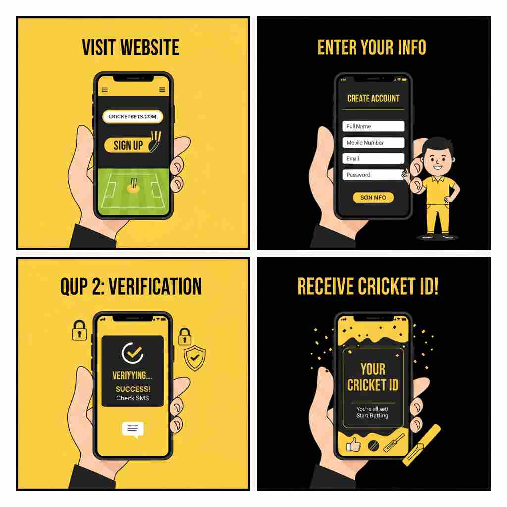 Acquiring your Cricket Betting ID is simple, fast, and totally secure. All you need to follow the steps below to start betting right now: