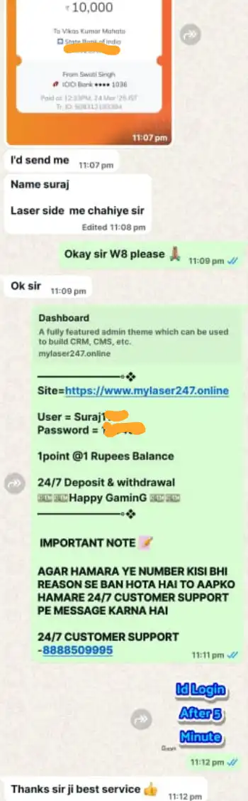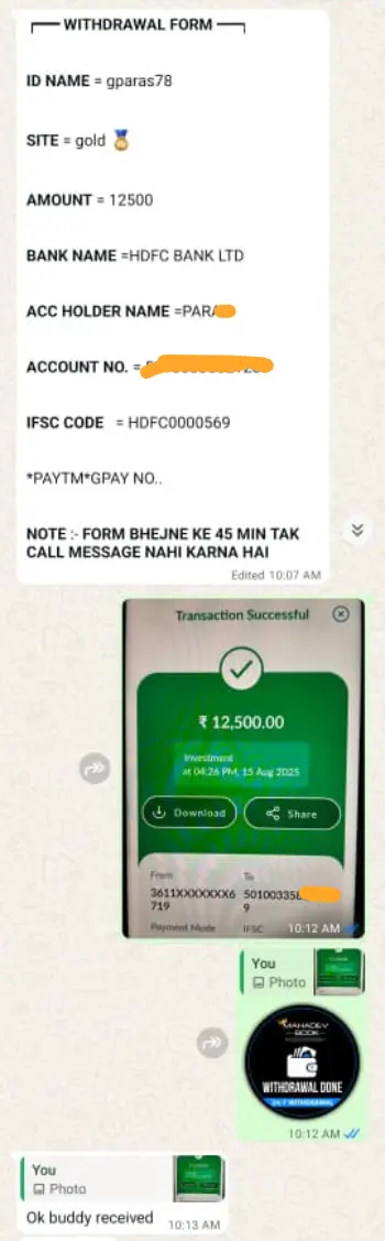 WhatsApp Screenshots of Cricket ID Players Who Successfully Withdraw Money